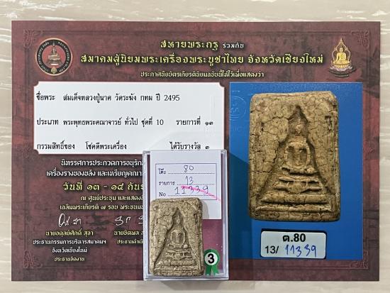 สร้างปี 2495 สภาพสวย สมบูรณ์ ไม่หักไม่ซ่อม รับประกันพระแท้ ดูง่าย ใบประกาศรางวัลที่3งานสมาคม