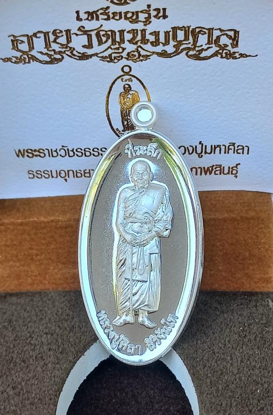 วัดใจ หลวงปู่มหาศิลา สิริจันโท(หลวงปู่ศิลา) อายุวัฒนะมงคล81 พิมพ์ยืน "เนื้อเงิน" ซ ป้ายแดง