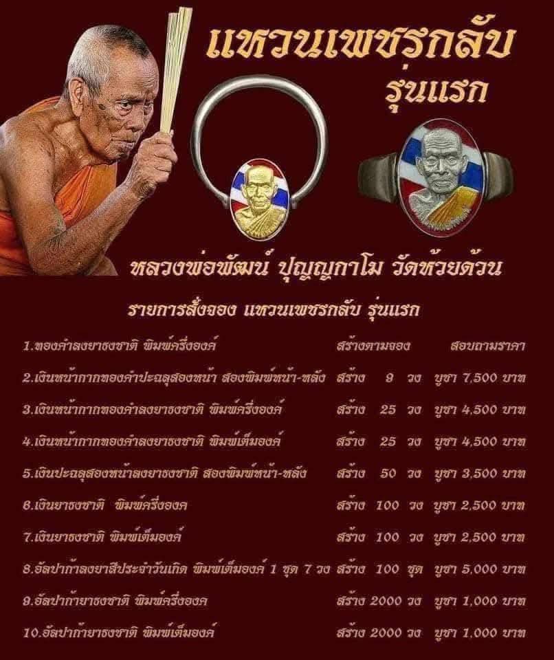แหวนเพชรกลับ หลวงพ่อพัฒน์ วัดห้วยด้วน นครสวรรค์ "ยังไม่แกะซีล" วัดใจ 100 แดงครับ |