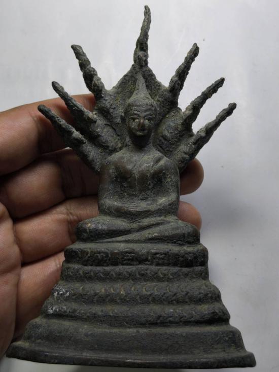 พระบูชา พิมพ์นาคปรก เนื้อหาดี "ขนาด ฐานล่างกว้าง 3.2 นิ้ว หน้าตักกว้าง 1.7 นิ้ว สูงจากล่างสุดถึงเศียรพญานาค 5 นิ้ว" |