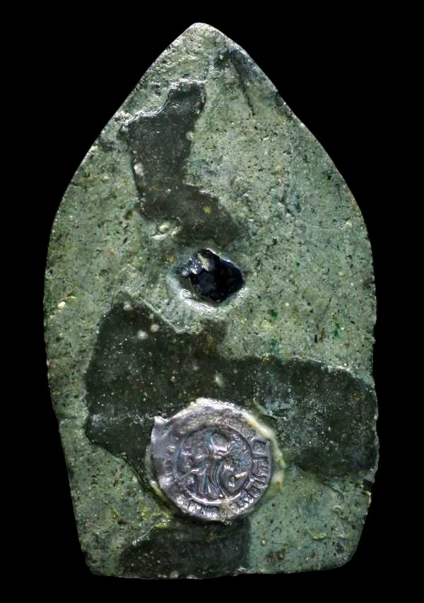 ใต้ฐานฝังตะกรุดเงิน 1 ดอก