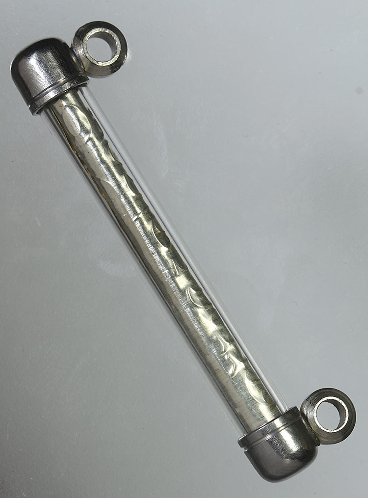 วัดใจ**เครื่องราง ตะกรุดปลดหนี้หรือตะกรุดกันผี กันคุณไสย แผ่นเงิน จารยันต์ด้วยมือ หลวงปู่กาหลง เขี้ยวแก้ว ความยาว 4 ซม. ใส่หลอด...พร้อมซองเดิมๆครับ |