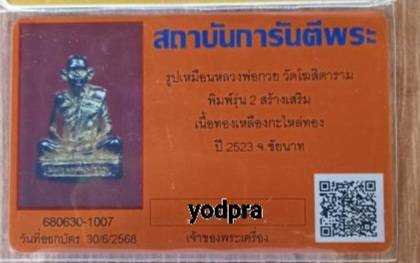 หลวงพ่อกวย วัดโฆสิตาราม รูปเหมือน พิมพ์รุ่น 2 สร้างเสริม เนื้อทองเหลืองกะไหล่ทอง ปี 2523 จ.ชัยนาท พร้อมบัตรจีสบายใจ พระสวยมากๆ |