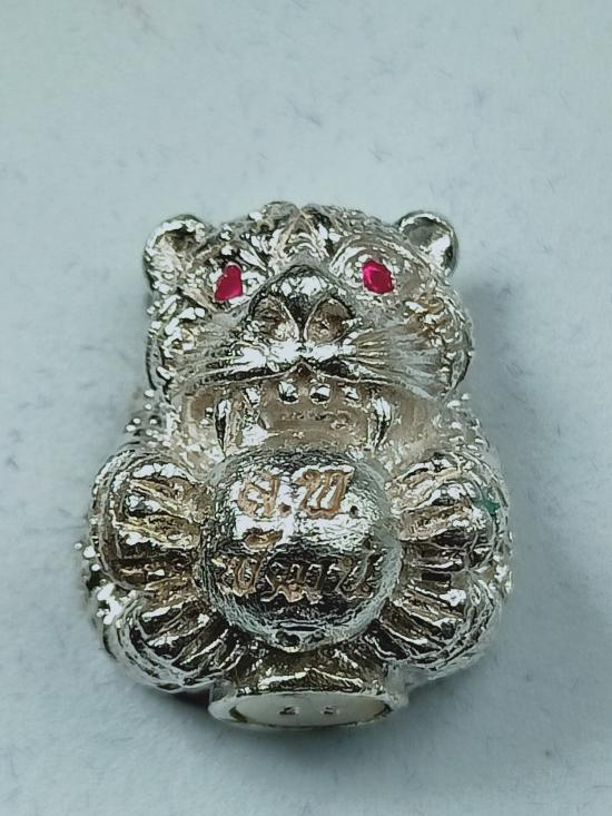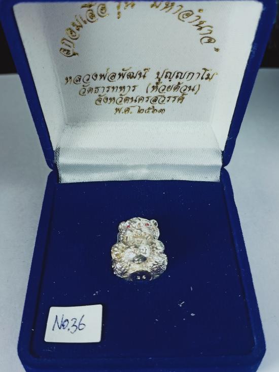 ลูกอมเสือ รุ่นมหาอำนาจ หลวงพ่อพัฒน์ วัดห้วยด้วน เนื้อเงิน (ตาฝังทับทิม) เบอร์ 36 พร้อมกล่องครับ (เหรียญหนัก17.80 กรัม) |