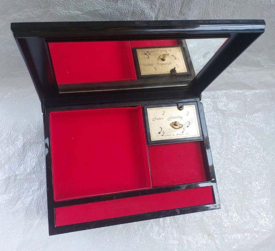 กล่องเครื่องประดับสุดหรู Kansai Yamamoto แบบมีนาฬิกา เคลือบแล็กเกอร์ เขียนลายเส้นทอง เป็นกล่องดนตรีด้วย ใช้งานได้ปกติ