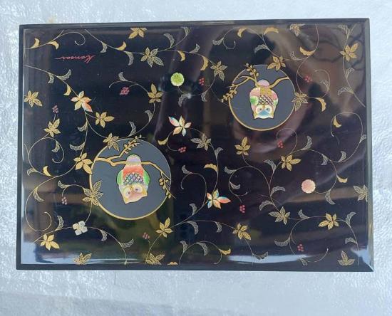 กล่องเครื่องประดับมีนาฬิกา งานเคลือบเงาโฮโช-นูริ สไตล์โชวะเรโทร
