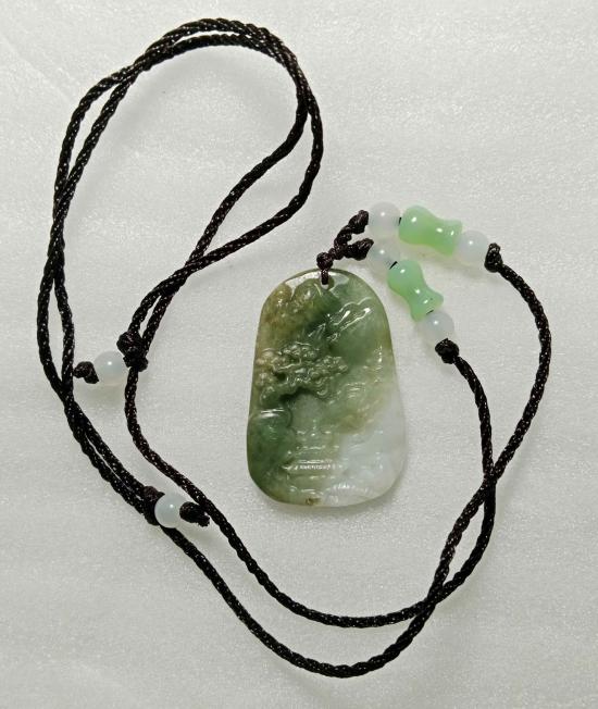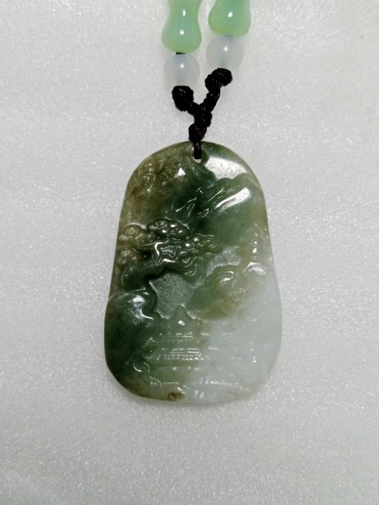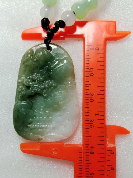 หยกแท้สลักรูปภูมิทัศน์แมกไม้ขุนเขาและเจดีย์ |