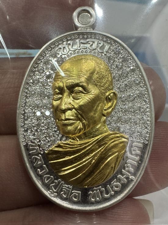 หลวงปู่จื่อ วัดเขาตาเงาะฯ เหรียญชนะจน ปี2567 เนื้อเงิน หน้ากากทองคำ no.72 มีกล่อง