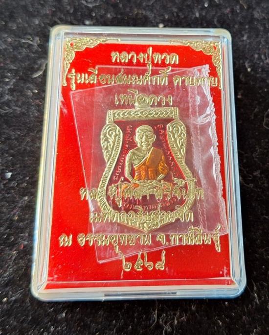 วัดใจ หลวงปู่ทวด หลวงปู่ศิลา เมตตาอธิษฐานจิต รุ่นเลื่อนสมณศักดิ์ เหนือดวง เนื้อทองทิพย์ ลงยา No.165 |