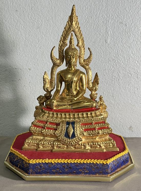 พระบูชาพระพุทธชินราชเนื้อทองเหลืองผิวขัดมัน หน้าตัก 3.0 นิ้ว ตราอกเลาหลังพานพระศรี พร้อมตู้ |