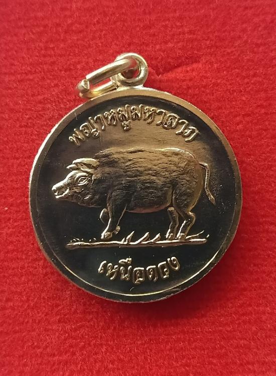 หลวงปู่มหาศิลา สิริจันโท ธรรมอุทยาน จ.กาฬสินธุ์หมูมหาลาภ รุ่น เหนือดวงหลังยันต์ขวัญถุง เนื้ออัลปาก้า |