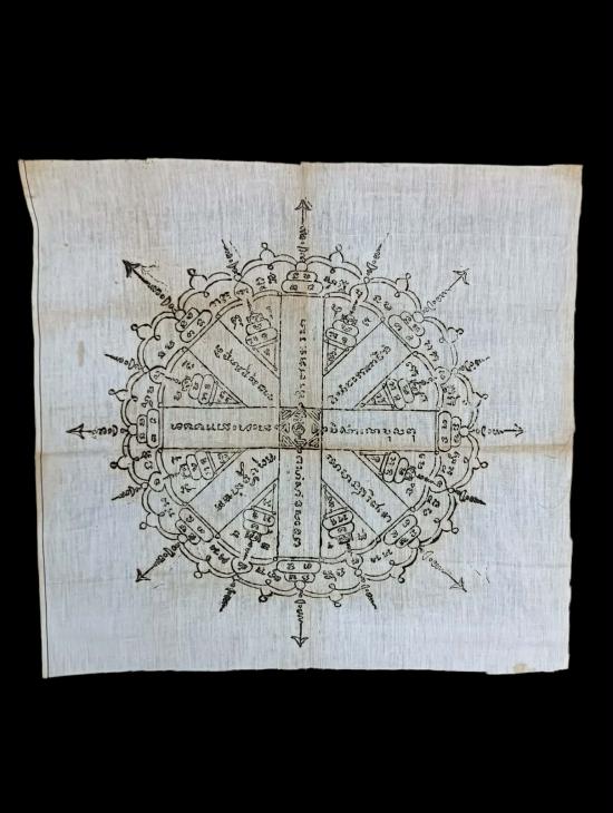 ผ้ายันต์อิติปิโสแปดทิศ เก่ามีอายุ ไม่ทราบที่ ขนาด 13 x 14 นิ้ว สวยครับ |