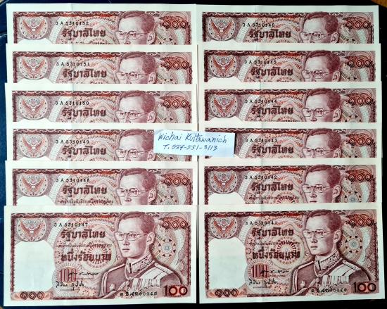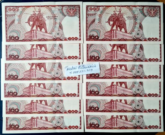 ธนบัตร ร 9 แบบ 12 ชนิดราคา 100 บาท ช้างแดง เลขเรียง 12 ใบ ราคาเบาหวิว