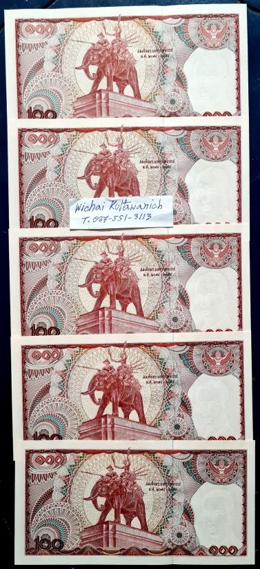 ธนบัตร ร 9 แบบ 12 ชนิดราคา 100 บาท ช้างแดง เลขเรียง 5 ใบ ราคาเบาหวิว