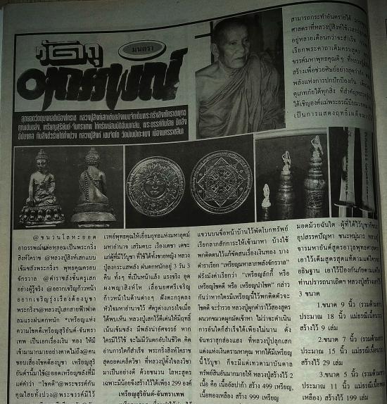 หลวงปู่ผูกตำราไว้สองสูตร ผนวกขมวดผูกมัดเข้าหา ให้มีฤทธิ์เดชร้องแรงเร่งรวยไวดั่งแสงสุริยา ให้เกิดแสงสว่างจ้าสุดผ่องใส ไม่ว่าจะดำเนินกิจการอันใดใดก็สำเร็จได้เพียงไม่นาน ให้มีโชค ให้มีดวง ให้มีวาสนา ดั่งจันทราสุขส่องแสง มหาฤทธิ์ยอดเหรียญสุดเข้มขลังอันร้อนแรง ที่หลวงปู่ปลุกเสกแต่งแห่งเงินตรามหาคุณ ไม่ว่าท่านจะตื่นหรือจะหลับ ไม่ว่าท่านจะขยับไปทิศไหน หากได้มีเหรียญนี้ไว้บูชา ก็จะมีแต่เทวดามาบันดาลทรัพย์สินอันมากมายให้ ใช้ปลดหนี้ได้ ใช้ค้าขายรับกำไรมาก ใครชอบเสี่ยงดวงก็จะมีแต่รับกับรับ หยิบจับอะไรก็ร่ำรวย หลวงปู่สร้างไว้ 2 เนื้อ คือ.