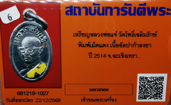 เหรียญเม็ดแตง หลวงพ่อแจ๋ วัดโพธิ์เฉลิมรักษ์ เนื้ออัลปาก้าลงสีเหลือง ห่วงเดิม ปี2514 จ.ฉะเชิงเทรา + บัตรG-pra สภาพเดิมค่ะ |