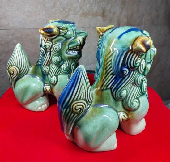 **วัดใจ***สิงโตญี่ปุ่น/ซีซ่า (ขนาดสูง6 นิ้ว) สิงโตคู่นี้ลายเคลือบเอกลักษณ์พร้อม ฮู้เทพพระเจ้ากวนอู (วัดเล่งเน่ยยี่ 2) |