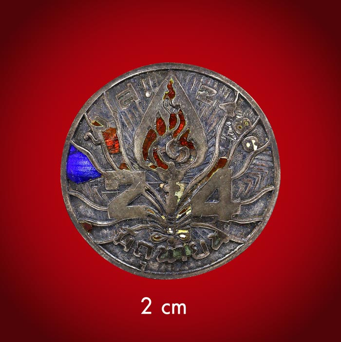 (วัดใจ)เม็ดกระดุม (ไม่ทราบที่) ที่ระลึก 24 มิถุนายน พ.ส.2486 เนื้อเงินลงยา ขนาดเม็ดกระดุม 2 cm |
