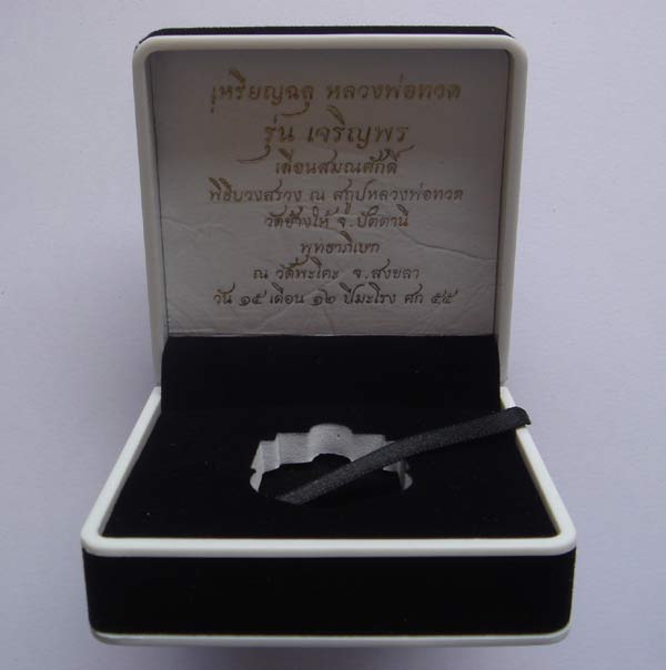 "วัดใจ" หลวงปู่ทวด เจริญพร เลื่อนสมณศักดิ์ วัดพะโคะ เหรียญเสมาฉลุ เนื้ออัลปาก้าลงยาสีเขียว หมายเลข 240 สภาพสวยพร้อมกล่องเดิม