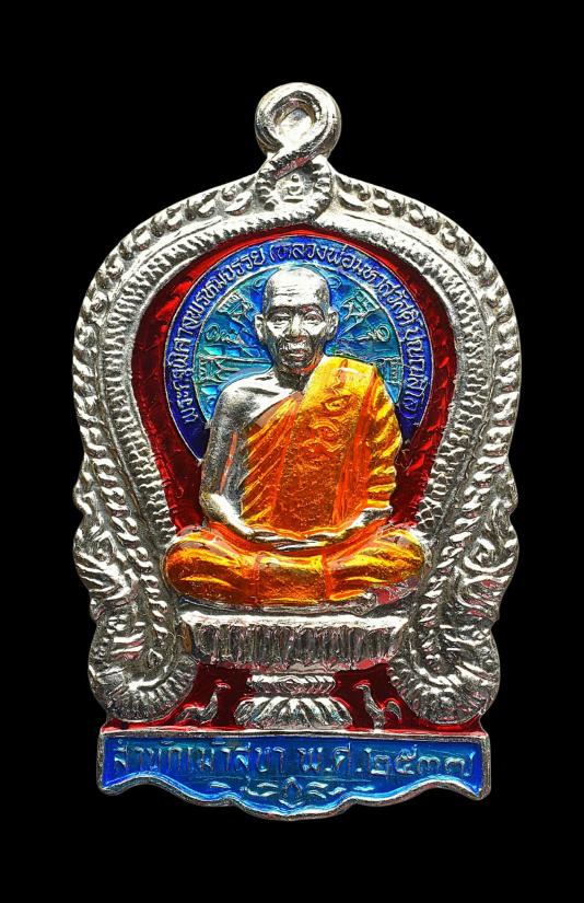 เหรียญพิมพ์นั่งพาน รุ่น 1 หลวงพ่อสวัสดิ์ ปุณณสีโล เนื้อเงินลงยาสีฟ้า หมายเลข 184 วัดใจเคาะแรก!!!