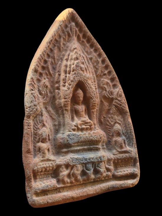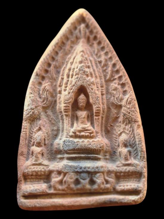 ตรีกายซุ้มปรางค์ เนื้อดินเผา พิมพ์ใหญ่ ไม่ทราบกรุ