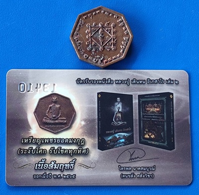 เหรียญสมนาคุณเนื้อสัมฤทธิ์ (เหรียญหล่อหลวงปู่ เดินหน อิเกสาโร รุ่นแรก เพชรยอดมงกุฎ (ระงับโศก รับโชคทุกทิศ) พร้อมบัตรรับรองหนังสือ หลวงปู่ เดินหน อิเกสาโร เล่ม 2 หมายเลข 13410 |