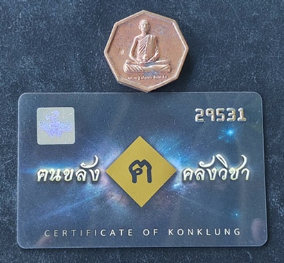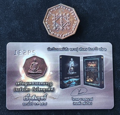 เหรียญสมนาคุณเนื้อสัมฤทธิ์ (เหรียญหล่อหลวงปู่ เดินหน อิเกสาโร รุ่นแรก เพชรยอดมงกุฎ (ระงับโศก รับโชคทุกทิศ) พร้อมบัตรรับรองหนังสือ หลวงปู่ เดินหน อิเกสาโร เล่ม 2 หมายเลข 29531 |