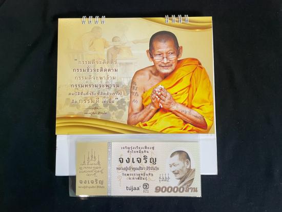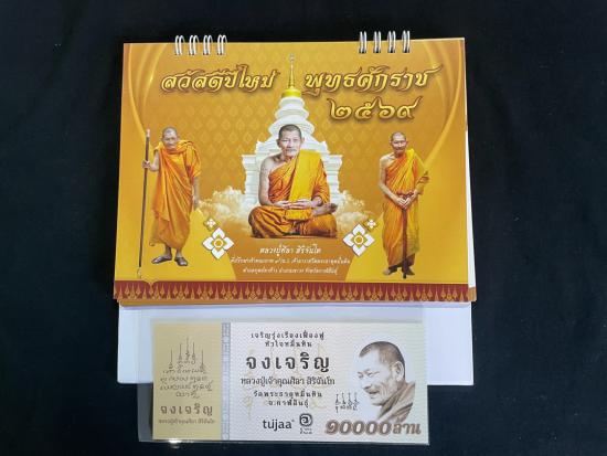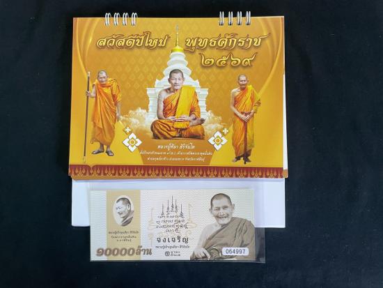 !!!เคาะเดียวได้ 2 รายการ !!! ปฎิทินตั้งโต๊ะพร้อมธนบัตร 10000 ล้าน หมายเลข 064997 หลวงปู่ศิลา สิริจันโท |