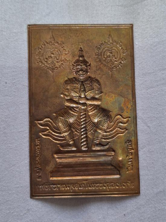 แผ่นปั๊ม (หน้ากาก) ท้าวเวสสุวรรณ หลวงพ่ออิฏฐ์ วัดจุฬามณี เนื้อมหาชนวนล้วน ตอกโค๊ต เต็กเหล็ง ปี 2554 ขนาด 5 x 8 ซม.