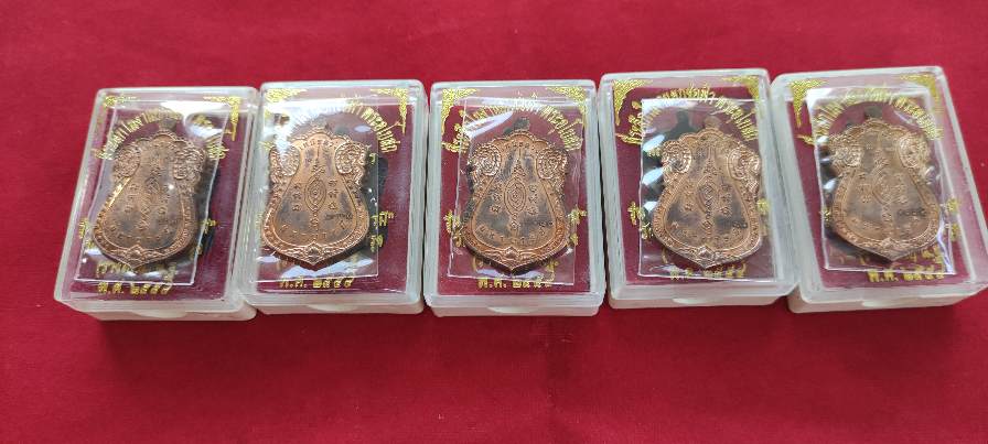 ชื่อพระเครื่อง เหรียญเสมาหลวงปู่แผ้ววัดรางหมัน รุ่นเหนือดวง มหาบารมีเนื้อทองแดง5องค์ พร้อมกล่องครับ