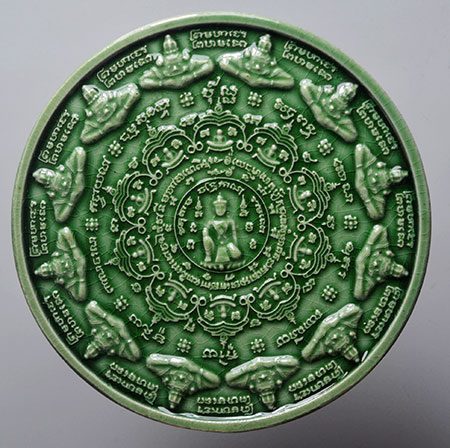 จตุคามรามเทพ รุ่น มหาเทวโพธิสัตว์สุวรรณภูมิ ปี 2550 กระเบื้องเคลือบสีแดง 2 หน้า และเคลือบเขียว หลังเจดีย์ รับ 2 องค์ |