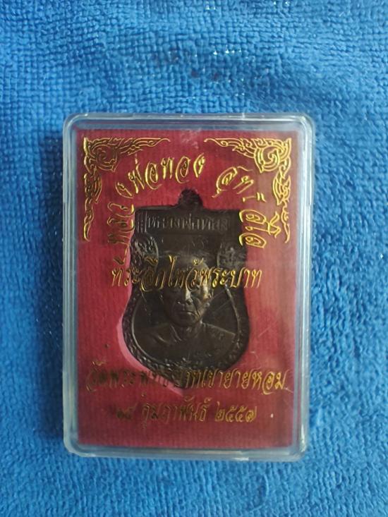 เสมาไหว้พระบาท ล.พ.ทอง สุทธสีโล วัดพระพุทธบาทเขายายหอม เนื้อมหาชนวน หมายเลข ๗๔๙ ปี 2557 สร้างน้อยและหายากมากๆ พร้อมรอยจารหลวงพ่อหน้าหลัง |