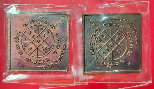 หลวงปู่ศิลา เหรียญพระพรหมข้าวหลามตัด รุ่น เหนือดวง เนื้อทoงแดงผิวรุ้ง จำนวน 2 เหรียญ |