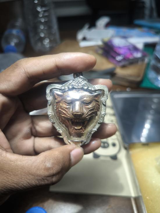 หน้าเสือขนพอง (เสือหากิน) เลี่ยมเงิน พร้อมใช้ หลวงพ่อสุพจน์ วัดศรีทรงธรรม นครสวรรค์