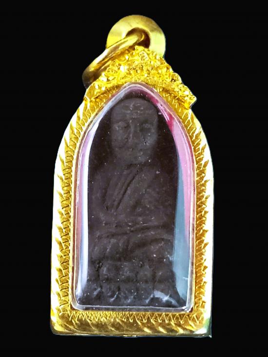 หลวงปู่ทวด หลัง สก. วัดห้วยมงคล เนื้อว่าน พิมพ์พระรอด ปี 2544 ใส่ตลับเงินผสมชุบสีทอง พร้อมขึ้นคอ |