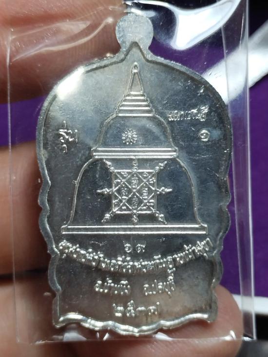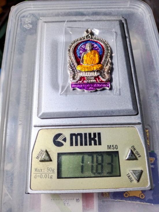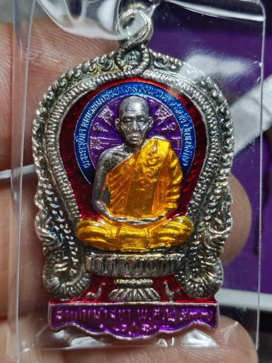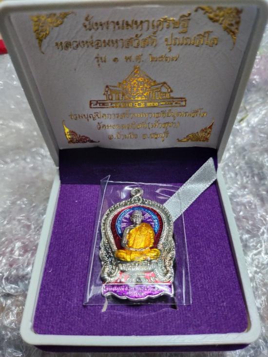 เหรียญนั่งพานมหาเศรษฐี หลวงพ่อสวัสดิ์ วัดเม้าสุขา รุ่น1 ปี2537 เนื้อเงินลงยาม่วง เลข69