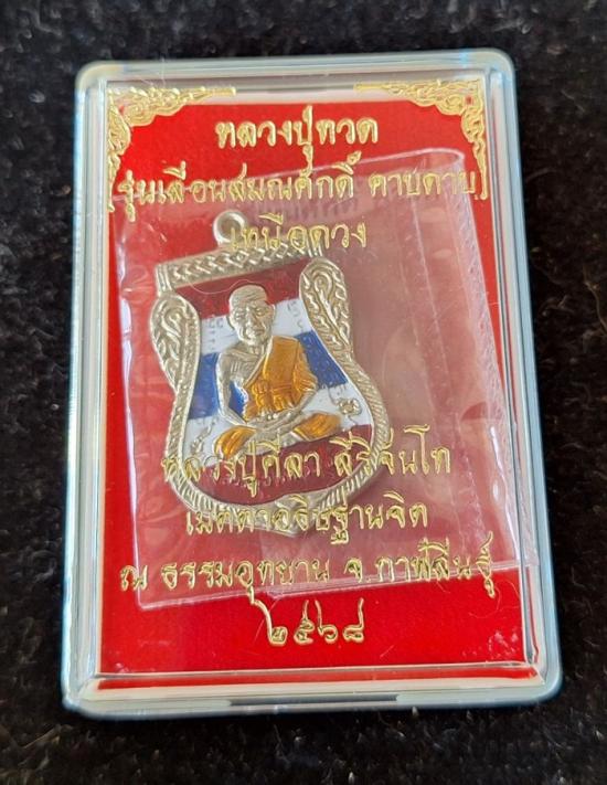 วัดใจ หลวงปู่ทวด หลวงปู่ศิลา เมตตาอธิษฐานจิต รุ่นเลื่อนสมณศักดิ์ เหนือดวง เนื้ออัลปาก้า ลงยาลายธงชาติ No.945 |