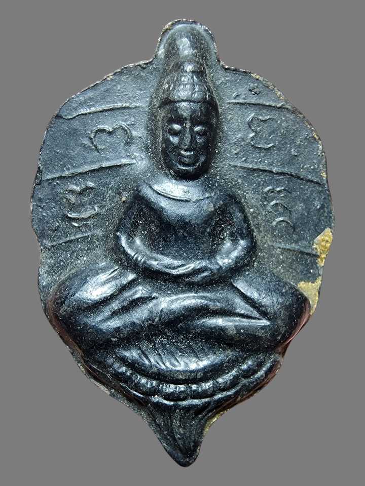 เคาะแรกแดง พระพิมพ์ใบโพธิ์เนื้อดำจุ่มรักขอบทองหลวงพ่อลีวัดอโศการามปี 2508 พระดีพิธีใหญ่สร้างน้อยหายากรับประกันตามกฎ