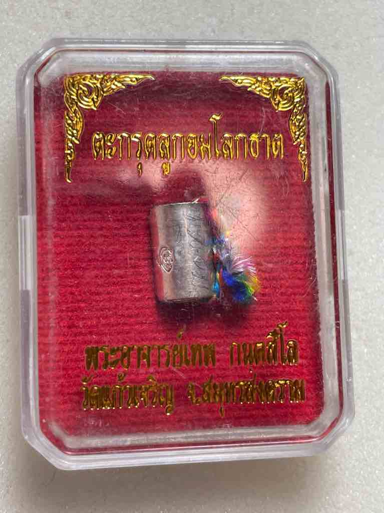 550.- ems ตะกรุดลูกอมโลกธาตุ เนื้อเงิน พระอาจารย์เทพย์ วัดแก้วเจริญ สมุทรสงคราม (เจ้าอาวาส วัดละมุด) ตอกโค๊ด มีจารลายเซ็น กนตสีโล มีกล่องเดิม ท่านได้สืบทอดวิชามาโดยตรง จาก หลวงพ่อหยอด วัดแก้วเจริญ |