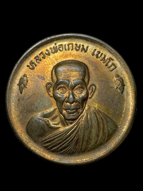 เหรียญขันน้ำมนต์ดวงเศรษฐีหลวงพ่อเกษม เขมโก ปี 2536 เนื้อทองแดงผิวไฟ ตอกโค๊ดดี หายาก