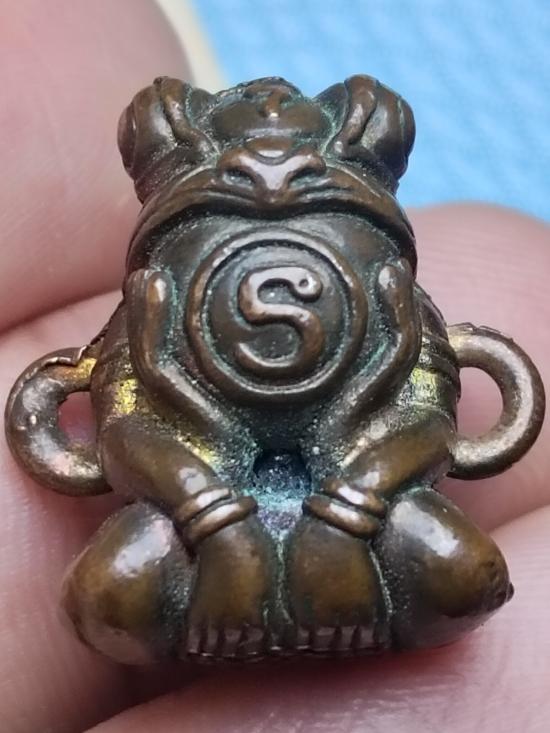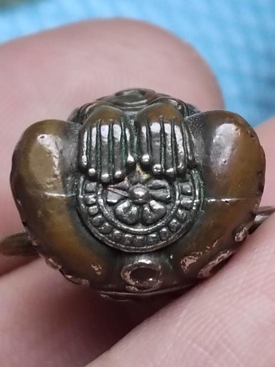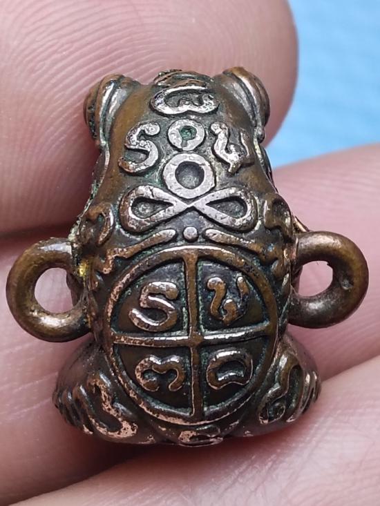 พญากบกินเดือน เนื้อทองแดงกะไหล่เงิน มีห่วงด้านข้างสำหรับทำสร้อยข้อมือได้ |