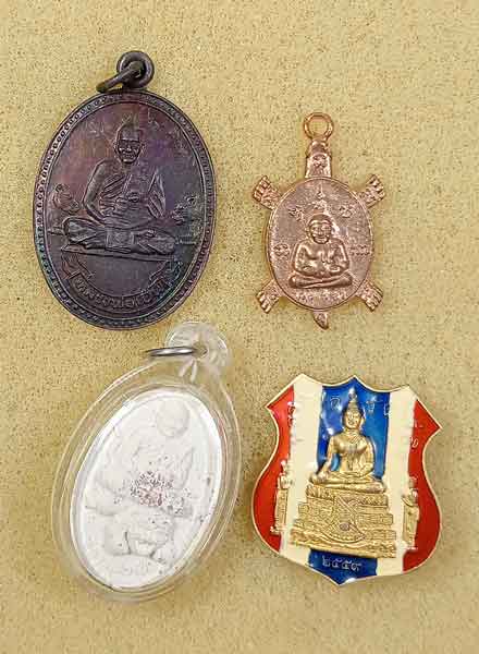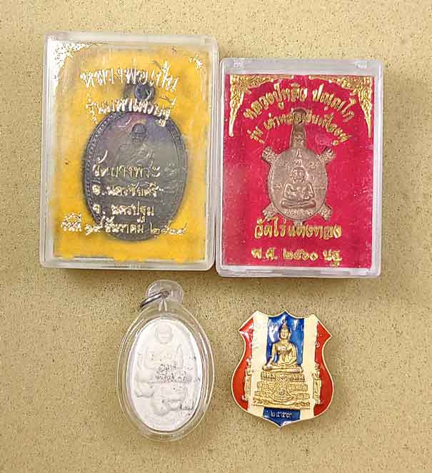 พระหลวงพ่อเปิ่น 2 องค์ +เต่าหล่อเงินเฟื่องฟู + เข็มกลัดหลวงพ่อวัดไร่ขิง ปี59 |