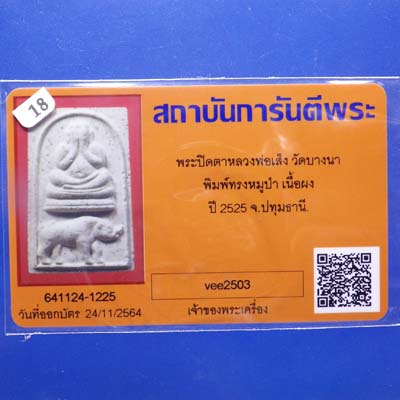 พระปิดตา หลวงพ่อเส็ง วัดบางนา พิมพ์ทรงหมูป่า จ.ปทุมธานี ปี 2525 ....T18..(66.10.3