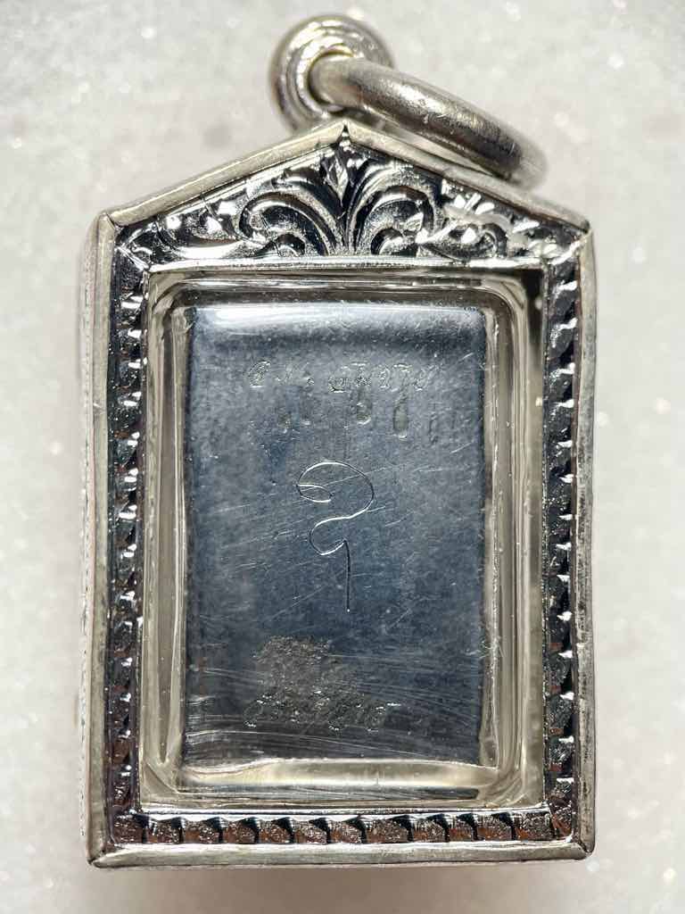 พระหล่อพิมพ์ซุ้มรัศมี หลวงปู่ศุข เนื้อหิรัญพัด (เมฆพัตร หุง2รอบ) ผสมเงินและทองคำ* หลวงพ่อสมชาย วัดปริวาส มีจารมือ เลี่ยมกรอบเงินฝังเพชร สั่งทำอย่างดี (สั่งทำใหม่ต้องมี 2,000++)