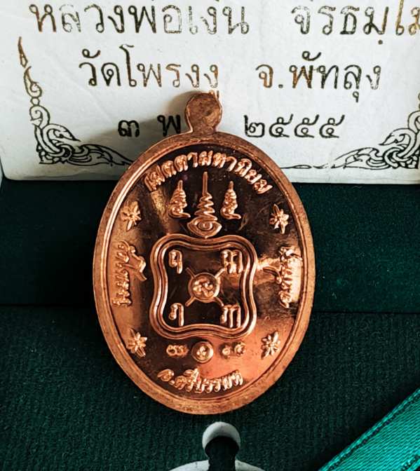 เคาะเดียวแดง เหรียญ เจริญพร 55 ทองแดงผิวไฟหน้ากากเงิน หลวงพ่อเงิน วัดโพรงงู พัทลุง |