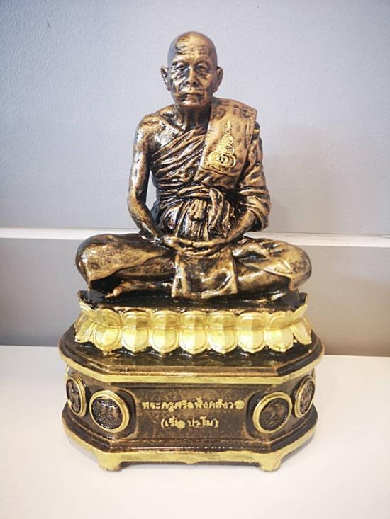 พระบูชา หลวงพ่อเริ่ม ปรโม สีทองเหลืองโบราณ ก้นอุดผง หน้าตัก 6 นิ้ว หมายเลข 2963 <320>