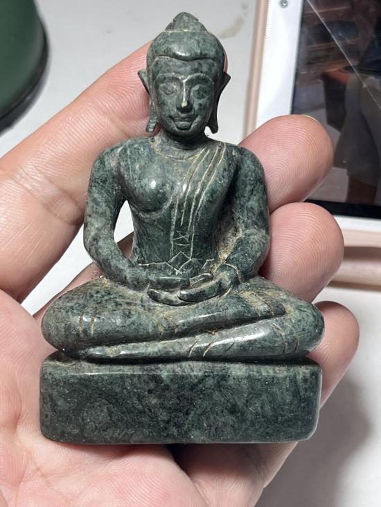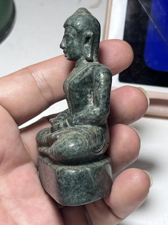 วัดใจ แดงเคาะแรก พระบูชาหินหยกแกะไม่ทราบที่ ขนาดหน้าตัก 5.5 ซม. สูง 8.5 ซม. พระบ้านสวยตามภาพครับ