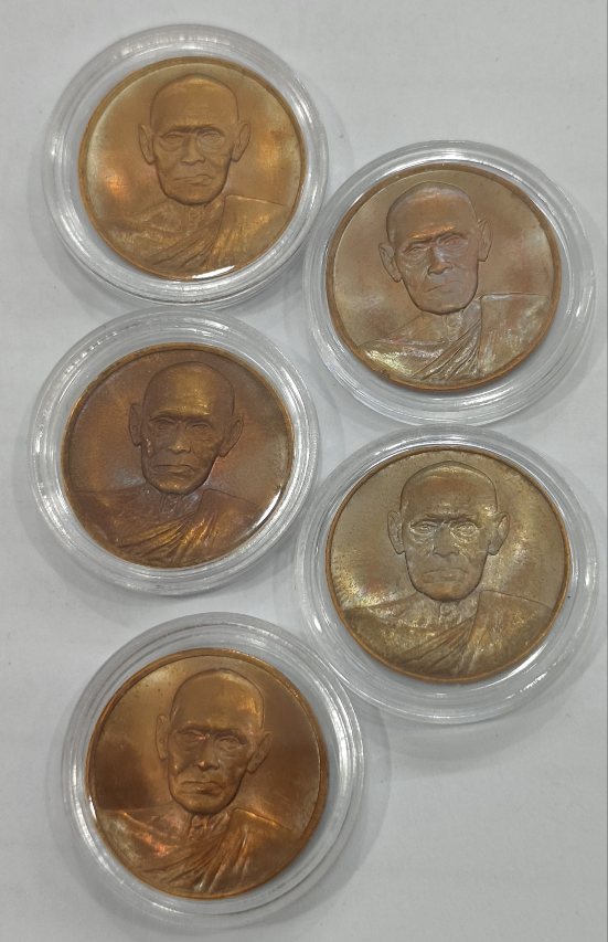 เคาะเดียว++ทีเดียว 5 เหรียญ++ เหรียญสมเด็จโต 122 ปี 2537 ขนาด 2.1 ซม ใส่ตลับเหรียญ 7 อย่างดี1.