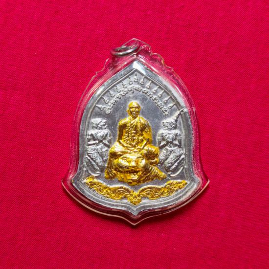 เหรียญเลื่อนยศ เจริญลาภ เนื้อปรอทเสก ปัดทอง หลวงพ่อเณร วัดทุ่งเศรษฐี เลี่ยมเดิมๆจากวัด