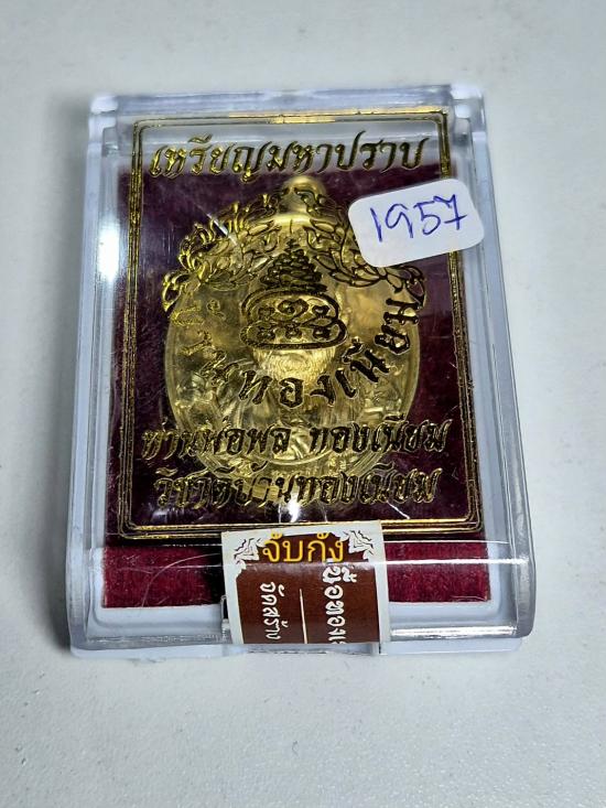 เหรียญมหาปราบ ไหว้ครู 68 พ่อพล บ้านทองเนียม เนื้อทองเหลืองขัดเงา หมายเลข 1957 |